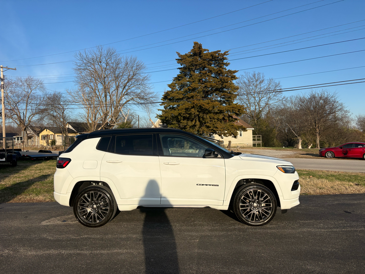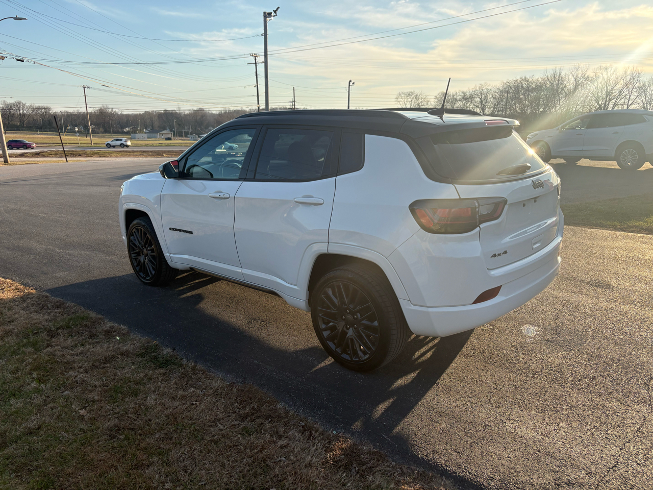 Get ready to hit the road in style and comfort with this sleek 2022 White Jeep Compass! Equipped with a powerful 2.4L I4 engine, this vehicle is ready to take on any adventure with its automatic full-time four-wheel drive capability. Step inside the luxurious interior featuring a heated leather steering wheel, dual-zone automatic air conditioning, and Uconnect with Bluetooth connectivity. Whether you're cruising around town or hitting the trails, this Jeep Compass has got you covered with its advanced safety features including blind spot detection, full-speed forward collision warning, and rear cross path detection. Plus, you can drive with confidence knowing that a Carfax report is available for this vehicle. With its stylish exterior design, 19" aluminum wheels, and integrated roof antenna, this Jeep Compass is sure to turn heads wherever you go. Don't miss out on the opportunity to make this impressive vehicle yours!